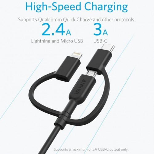 Anker A8436 PowerLine ll 3 in 1 Lightning Charging Cable