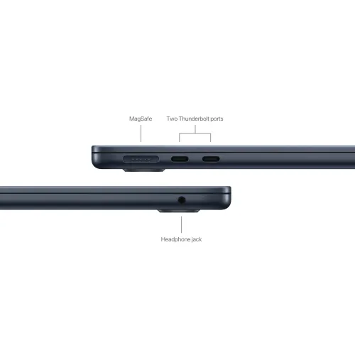 The MagSafe 3 charging port enables easy, secure charging. Additionally, the two Thunderbolt/USB 4 ports, Wi-Fi 6E, and Bluetooth 5.3 ensure fast, reliable connectivity. The Apple MacBook Air 15-inch M3 Chip in Midnight includes a 1-year warranty.