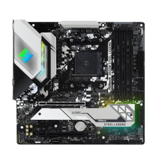The ASRock B550M Steel Legend m-ATX Motherboard is crafted with: