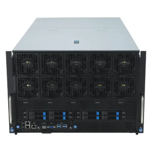 With support for up to 10 NVMe drives—eight on the front panel and two on the rear—the server offers rapid data access and ample storage capacity. It also includes up to 12 PCIe Gen5 slots, allowing for extensive expansion possibilities, including additional GPUs, DPUs, or high-speed networking cards .