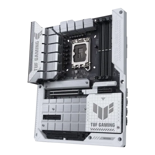 The ASUS TUF GAMING Z790-BTF WIFI motherboard is built for durability, featuring ASUS’s signature military-grade components for extended longevity and stability, making it ideal for long gaming sessions.