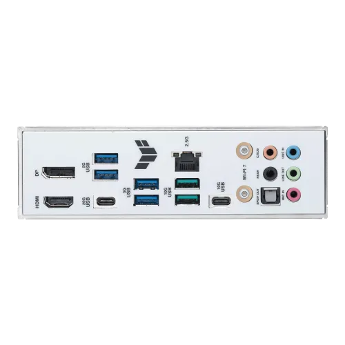 For seamless graphics output, the motherboard is equipped with 1x HDMI and 1x DisplayPort, ensuring compatibility with modern displays. It also offers Intel 2.5Gb Ethernet and the latest Intel Wi-Fi 7, providing reliable and fast internet connections, crucial for online gaming and streaming.
