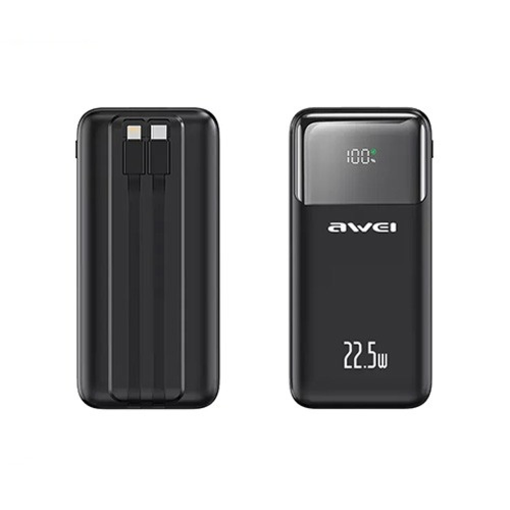 One of the standout features of the Awei P107K 20000mAh PD 22.5W Fast Charging Digital Display Power Bank is its digital display, which shows the exact battery percentage in real-time. Unlike traditional LED indicators, the digital display offers precise monitoring of remaining battery life, so you’ll never be caught off guard with a dead power bank. This feature is especially useful for users who depend on reliable charging throughout their day.