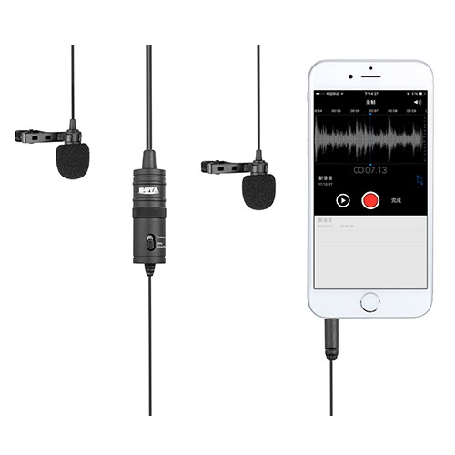 The Boya BY-M1DM is a Dual Lavalier Universal Microphone, equipped with a single 1/8″ (3.5mm) stereo connector. This thoughtful design makes it compatible with a wide array of devices such as: