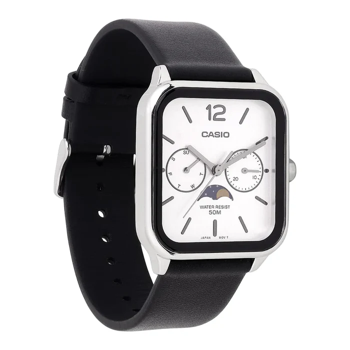 Why Choose the Moon-Phase White Dial Men’s Watch? The Moon-Phase White Dial Men’s Watch combines sophistication and functionality in a sleek design. The stainless steel case and black leather band offer a timeless look, while the precise quartz movement ensures accurate timekeeping. Whether for formal events or daily wear, this watch is a stylish addition to any outfit.