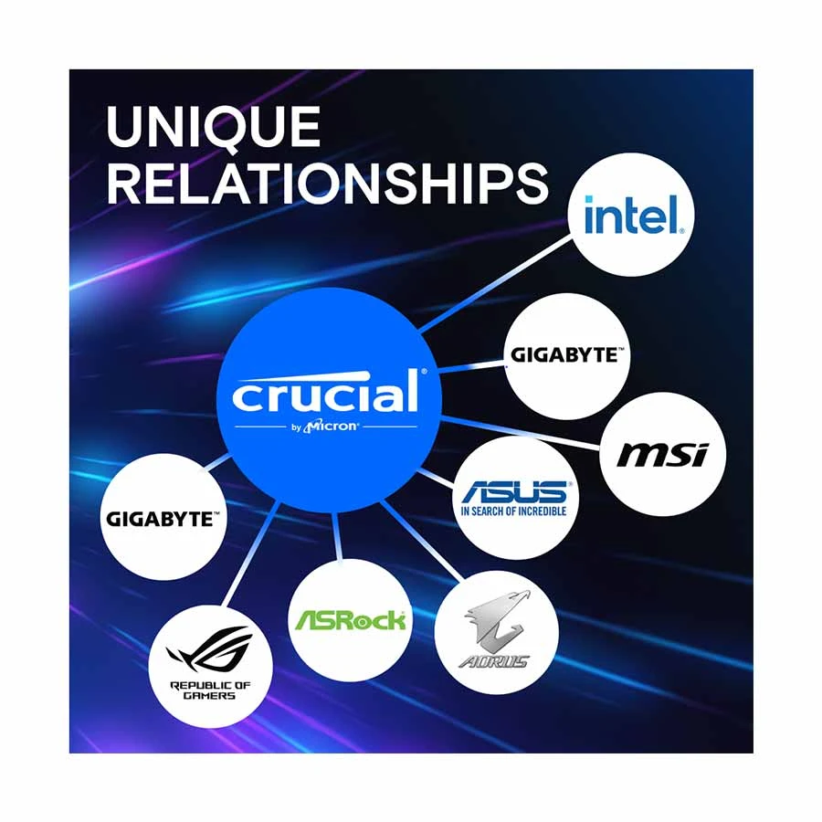 Built by Micron, a leading memory manufacturer with over 45 years of expertise, Crucial Pro DDR5 undergoes rigorous testing for optimal reliability and compatibility. As one of the top memory brands, Crucial ensures that every module meets high standards of quality, delivering a stable and dependable performance.