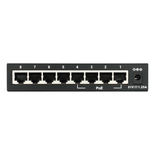 The DES-1008P features four 10/100BASE-TX ports supporting the IEEE 802.3af PoE protocol. Each PoE port can supply up to 15.4 W, with a total PoE budget of 56 W. Moreover, Allowing users to connect IEEE 802.3af-compliant devices without the need for additional power sources.