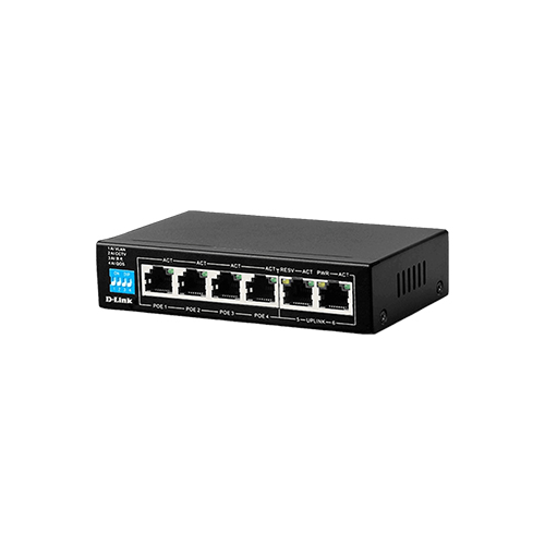 The D-Link DES-F1006P-E 6-Port Unmanaged PoE Switch is a cost-effective and reliable networking solution designed for small businesses, home offices, and security surveillance systems. With 6 Fast Ethernet ports, including 4 Power over Ethernet (PoE) ports, this switch is ideal for powering and connecting devices like IP cameras, VoIP phones, and wireless access points. Its compact, plug-and-play design makes it an easy choice for those looking to expand their network without the need for complex configurations or additional power infrastructure.