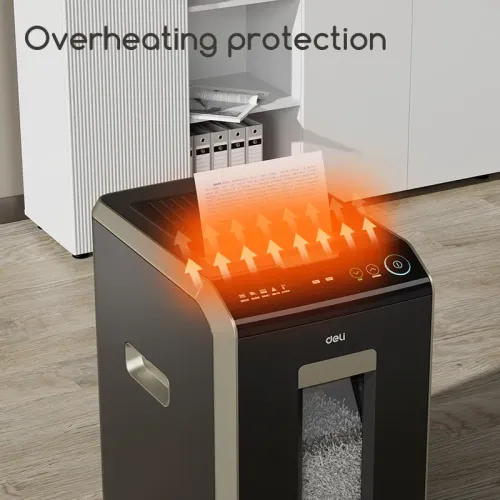 To ensure maximum durability, the Deli ET089 30L Paper Shredder is equipped with overload and overheat protection features. The machine includes an overload alarm that alerts users when too much paper is being fed, helping to prevent jams and extend the lifespan of the internal motor and blades.