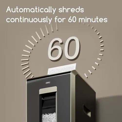 Most standard shredders overheat after 5 to 10 minutes of use. However, the Deli ET089 30L Paper Shredder boasts an exceptional continuous runtime of up to 60 minutes, making it an elite choice for businesses with high-volume shredding needs.