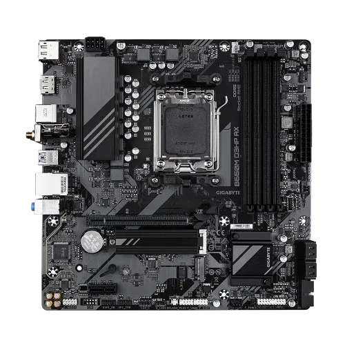 The GIGABYTE B650M D3HP AX DDR5 AM5 motherboard is designed to elevate your computing experience, offering seamless performance with support for the latest AMD Ryzen 8000 and 7000 Series processors on Socket AM5. With its robust 5+2+2 phases digital VRM solution, it delivers reliable power, even under heavy loads, ensuring stable and efficient operation for gaming, streaming, or multitasking.