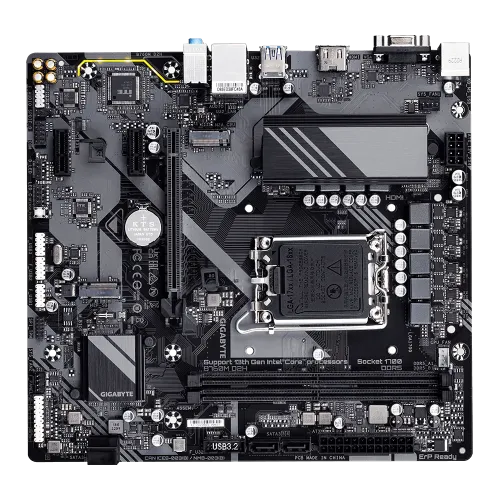 The GIGABYTE B760M D2H mATX motherboard is designed to deliver cutting-edge performance for Intel’s 14th, 13th, and 12th Gen processors, supported via the LGA 1700 socket. Equipped with a Hybrid 6+2+1 Phases Digital VRM Solution, this motherboard ensures efficient power delivery, optimizing system stability for smooth performance under demanding workloads.