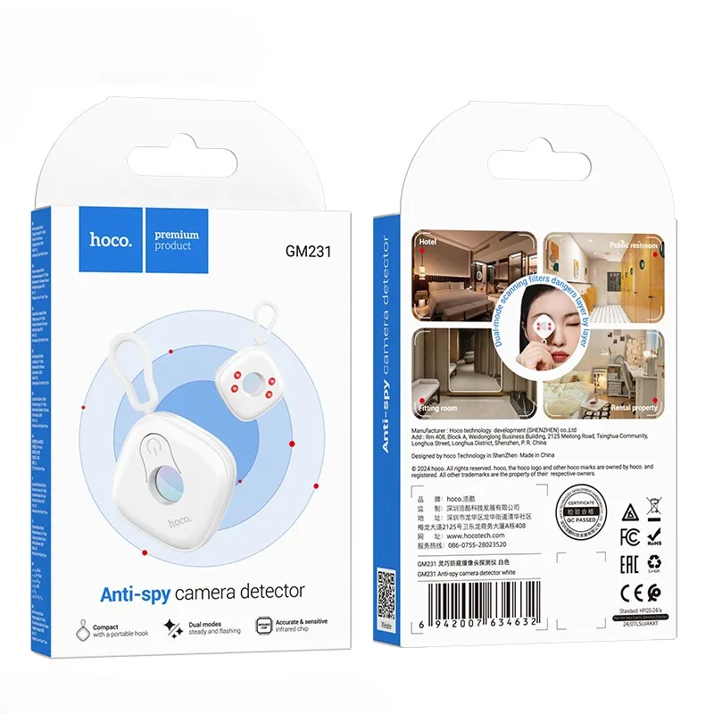 The Hoco GM231 Hidden Spy Camera Detector is built with advanced technology that allows for accurate identification of hidden lenses. Its high-sensitivity sensor and infrared LED detection ensure it can uncover even the smallest and most discreet surveillance cameras. Ideal for individuals who are privacy-conscious, this device can be used in a variety of environments including homes, hotels, fitting rooms, and public restrooms. Its lightweight and sleek form make it easy to carry in your pocket or bag, allowing you to scan suspicious areas anytime and anywhere. The powerful lens detection system works efficiently even in low-light conditions, providing comprehensive protection against unauthorized surveillance.
