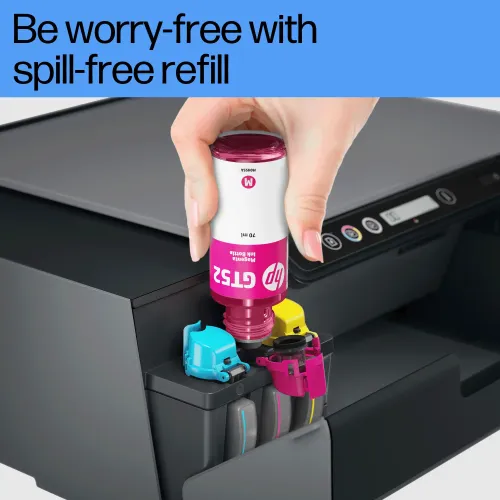 The HP Smart Tank 500’s spill-free refill design makes ink refills easy and clean. Enjoy a seamless refill experience that saves both time and effort.
