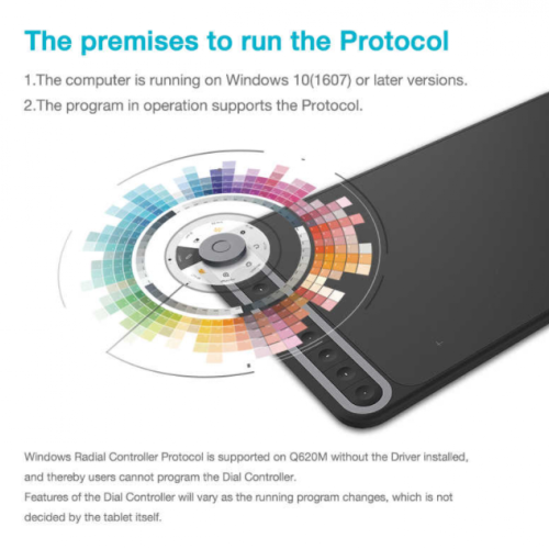 The Huion Inspiroy Dial Q620M Graphic Drawing Tablet is equipped with Bluetooth 5.0 and USB-C connectivity, ensuring reliable performance whether you’re connected wirelessly or wired. It’s compatible with a wide range of operating systems including Windows 7 or later, macOS 10.12 or later, and Android, offering flexible usage across multiple platforms. You can use the tablet with leading design software such as Adobe Photoshop, Illustrator, Clip Studio Paint, CorelDRAW, SAI, and more.