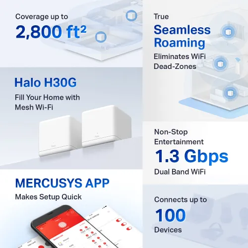 - Model: Mercusys Halo H30G AC1300 Dual Band Gigabit Mesh Router (2 Pack)