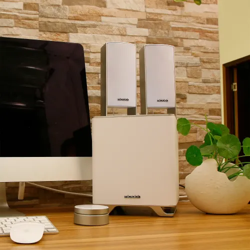 The Microlab M-600BT is not just an audio powerhouse—it is also a piece of modern craftsmanship that seamlessly integrates into any home decor. The wooden subwoofer is elegantly wrapped in a snow-white leather finish, exuding a sense of sophistication and luxury. This premium finish ensures that the speaker system stands out while maintaining an understated elegance.