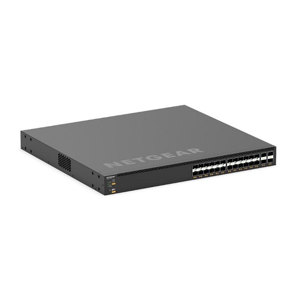 The NETGEAR M4350-24F4V (XSM4328FV) Managed Switch is a high-performance 24-Port SFP+ and 4-Port SFP28 25G AV Line Layer 3 (L3) Managed Switch, specifically designed to support demanding AV environments and enterprise-level networking needs. This switch provides exceptional speed, scalability, and reliability, making it ideal for audio-video production, content delivery, and mission-critical applications that require seamless connectivity and top-tier performance.