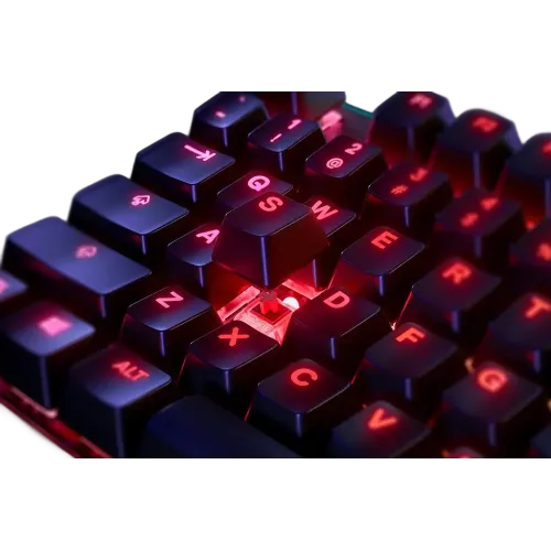- Red mechanical switches (QX2): Linear feel, 2mm actuation point, 4mm travel