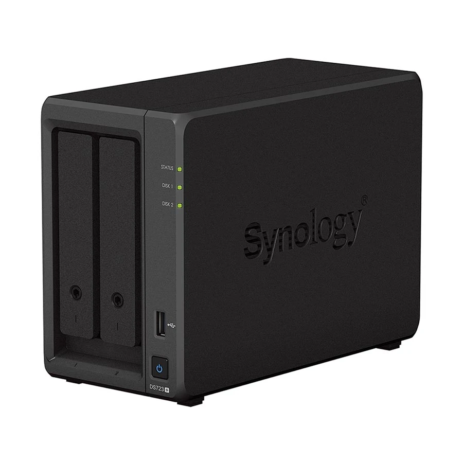 The Synology DiskStation DS723+ is a high-performance 2-bay NAS storage solution designed for individuals and small businesses. It offers powerful data management, backup, and file sharing capabilities in a compact desktop design.