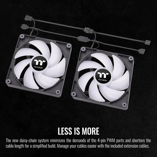 The Thermaltake CT120 ARGB Sync fans come with a 4 PIN PWM and 3 PIN-ARGB connector. Offering versatile compatibility with various systems. The package includes PWM cables x 2, ARGB cables x 2, and ARGB cable clips x 2 for easy and tidy cable management.