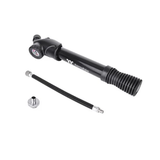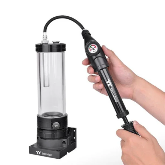 The Thermaltake Pacific Leak Tester is a simple and effective tool designed for testing liquid cooling water loops before filling them. With just a few pumps, users can ensure their systems are leak-free.
