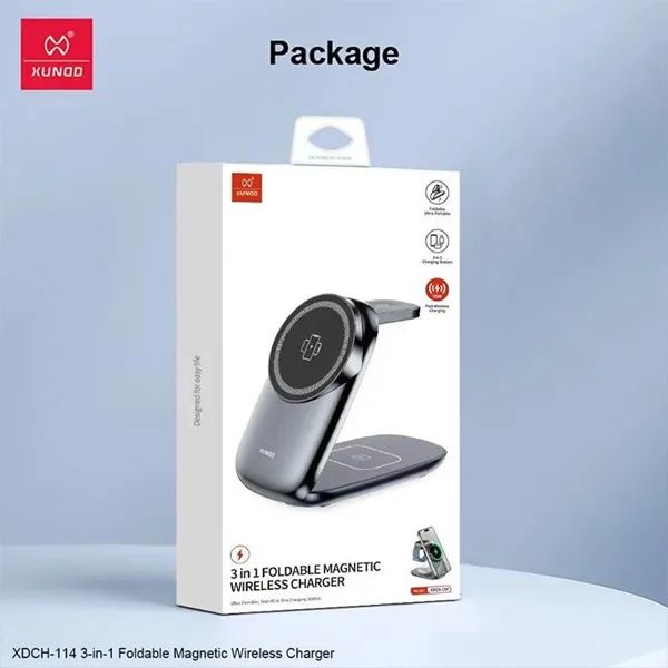 In today’s fast-paced world, we carry multiple devices, and keeping them charged simultaneously can be a hassle. The Xundd XDCH-114 3in1 Foldable Magnetic Wireless Charger eliminates clutter and simplifies your life with an elegant solution. Whether you’re at the office, on the go, or relaxing at home, this charger ensures your devices stay powered with style and efficiency.